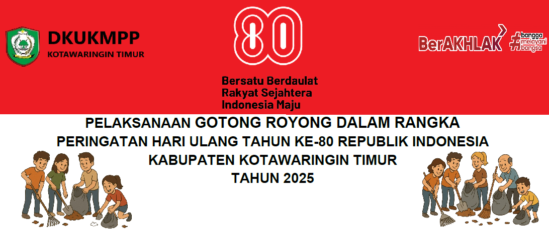 BERDASARKAN SURAT INSTRUKSI BUPATI KOTAWARINGIN TIMUR NOMOR 800/0496/SETDA.BU/2025 Dalam rangka Peringatan Hari Ulang Tahun Ke-80 Republik Indonesia Tahun 2025, dilaksanakan kegiatan gotong royong bersama yang dibagi menjadi 5 (lima) zona Zona 1 : Jalan...